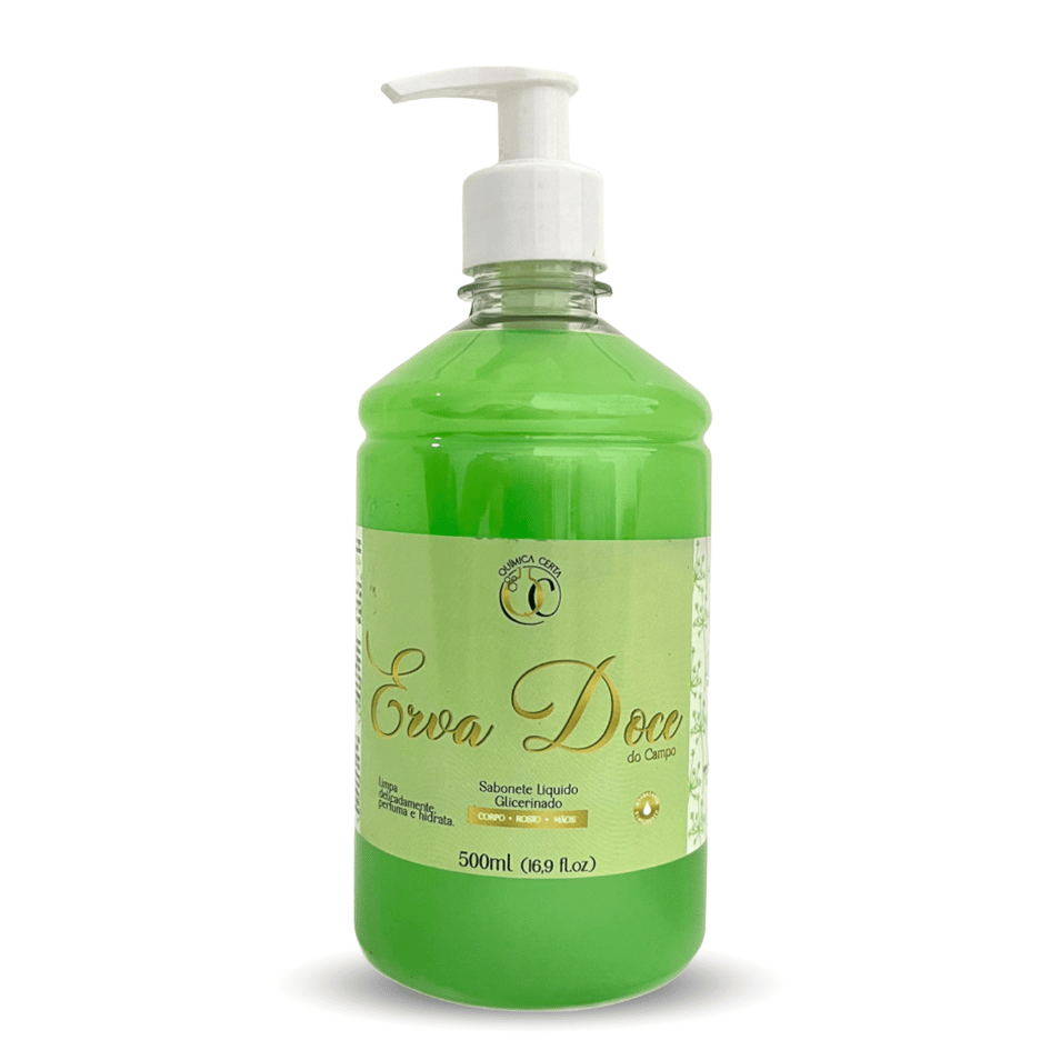 O Sabonete Líquido Erva Doce 500ml Química Certa proporciona limpeza eficaz e delicada, deixando a pele macia, perfumada e com sensação refrescante.